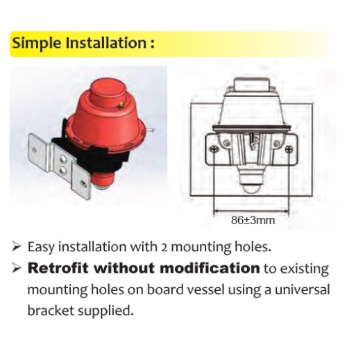 • Water sensors and gravity double activation system no inadvertent activation risk