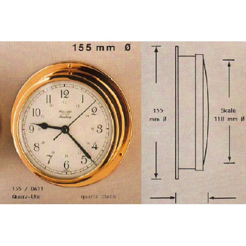 HANSEATIC, P/N: 155/0611 BRASS QUARTZ CLOCK, 5" DIAL