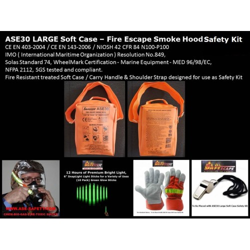 ASE30 FIRE ESCAPE SMOKE HOOD LARGE SOFT CASE SAFETY KIT ( 30 Minutes )