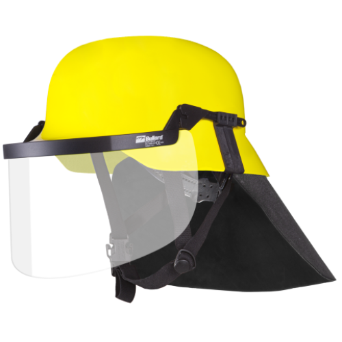 - Durable and adjustable flame retardant helmet with neck protector and replaceable visor.