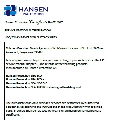 SERVICE - PRESSURE TEST - HANSEN IMMERSION SUIT