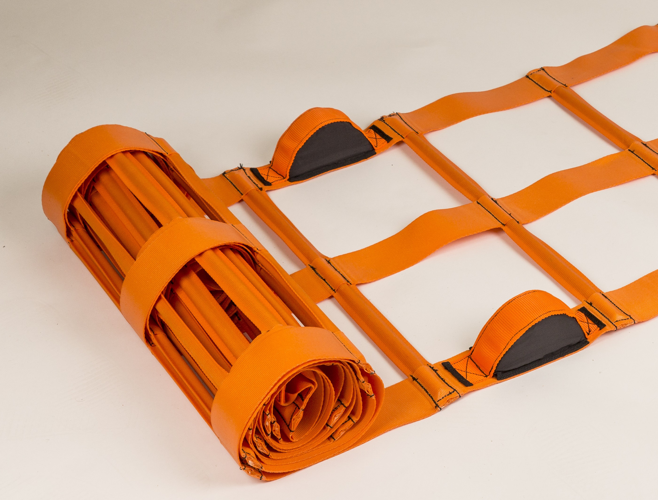 The ladders are constructed using carbon fibre rods enclosed in flanged tubular webbing.