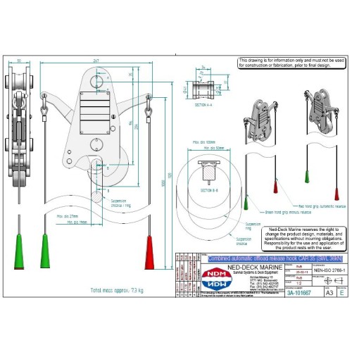 PALFINGER NED-DECK is the only life saving equipment manufacturer that is capable of supplying its customers with a SOLAS approved Combined Automatic Release Hook specially designed to handle rescue boats and life rafts up to a Safe Working Load of 3.500 kg (± 7716 lbs).